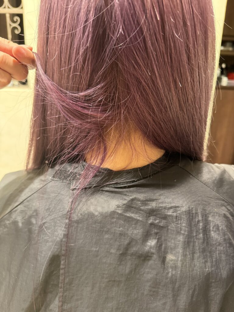 毛先の方までブリーチして、残留をとってもらいました!