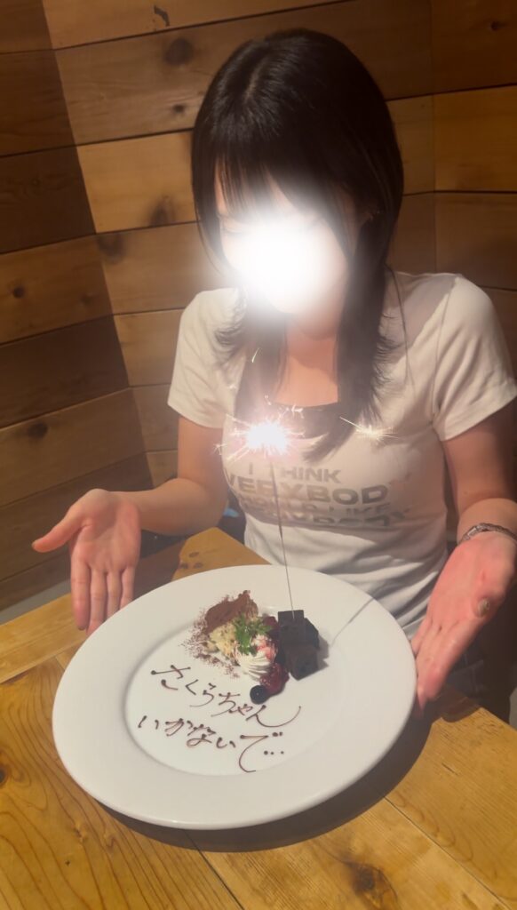 お店の人にプレートの文字を頼むのは少し恥ずかしかったですが、喜んでもらえたのでよかったです🐰💕